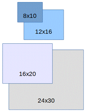 Sizes 16x20 and 24x30 inches.